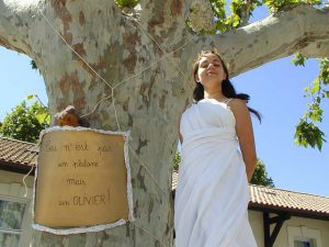 Les élèves ont réalisé par groupe de deux à quatre des mises en scène photographiques à l’aide d’appareils numériques. Ils ont choisi et interprété librement les personnages et créatures issus de la mythologie. Les images ont ensuite été mises en page avec les élèves puis imprimées.